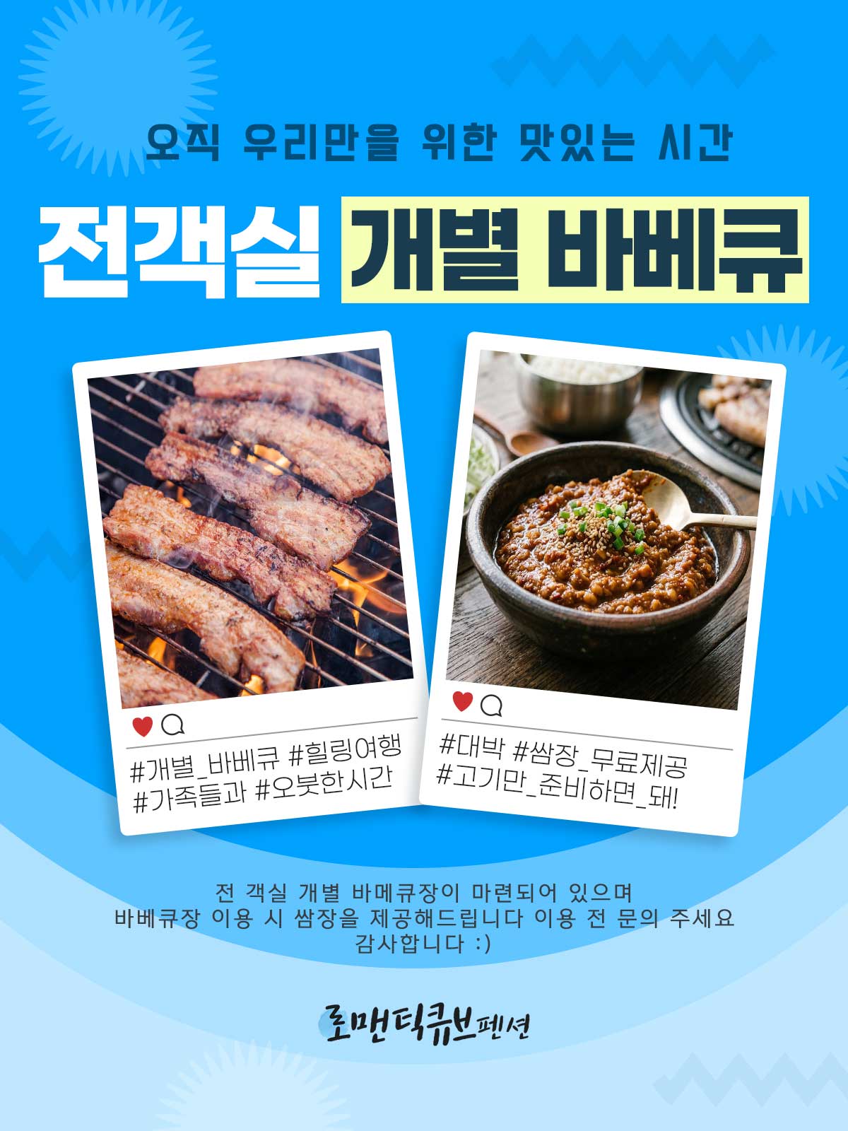 · 바비큐 이용 시간은 오후6시부터 10시까지 입니다(라스트오더 8시)
